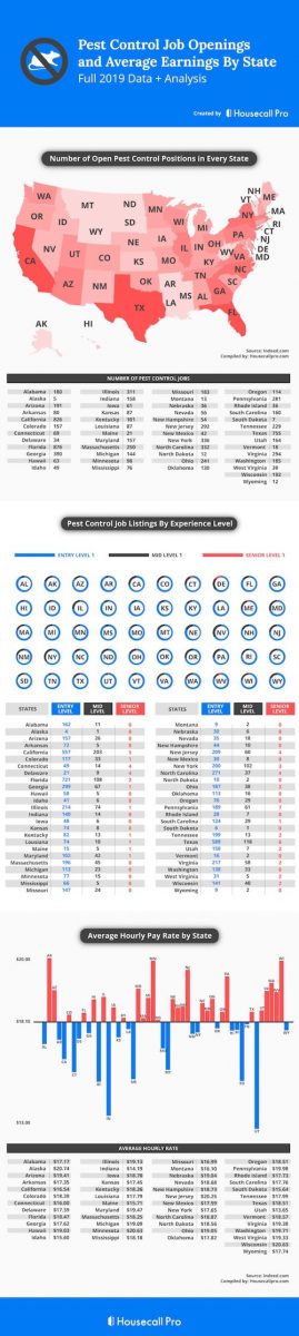 Depending on the amount of experience you have in the pest control industry, it can help you determine in which state you’re most likely to find a job. It can also give you a sense of the overall pest control marketplace in terms of how much demand there is for entry-, mid-, and senior-level positions.