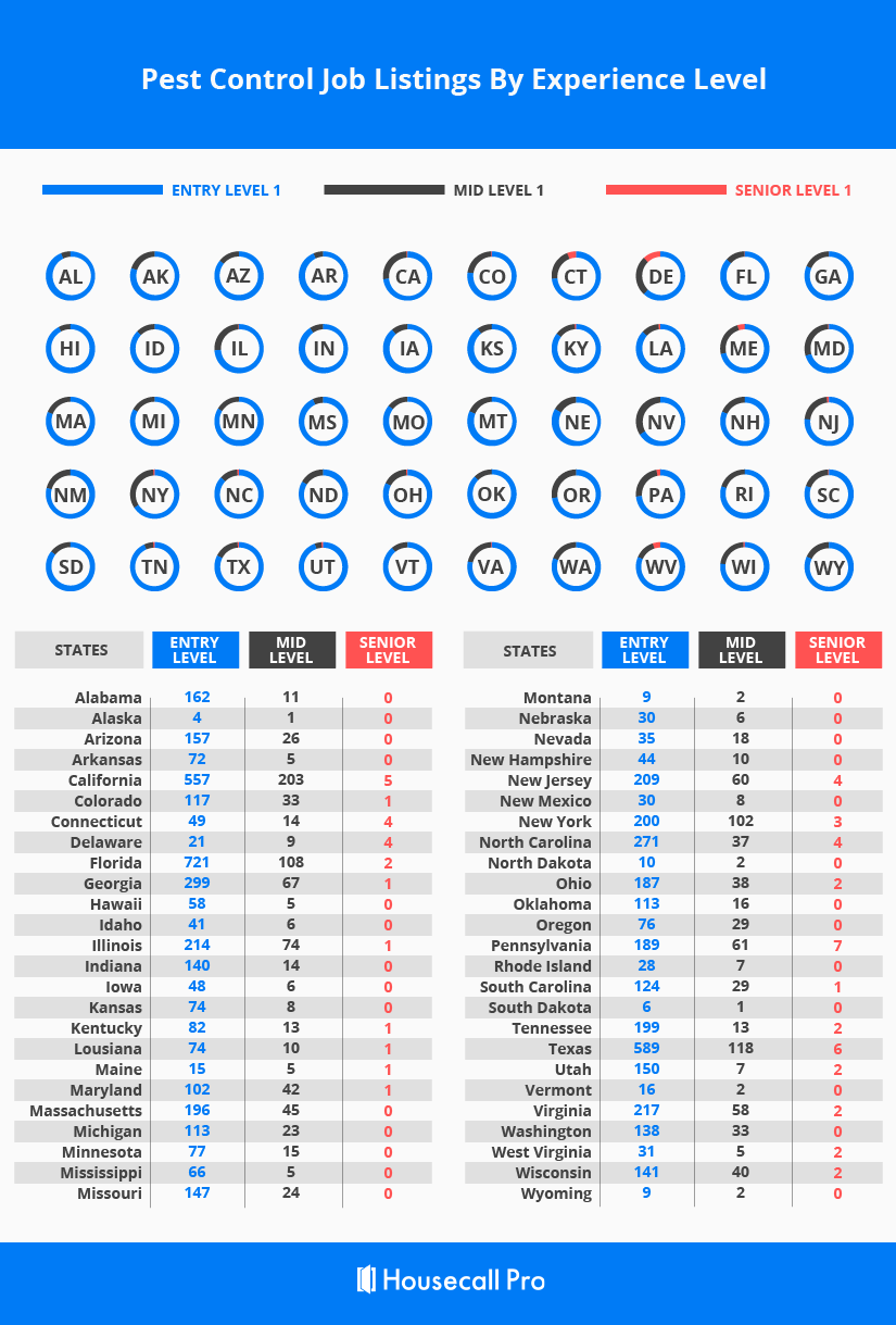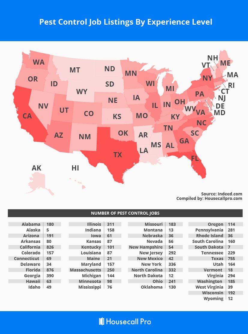 If you’re just getting rolling in the pest control industry, you’ll want to know how many entry-level jobs are available per state.